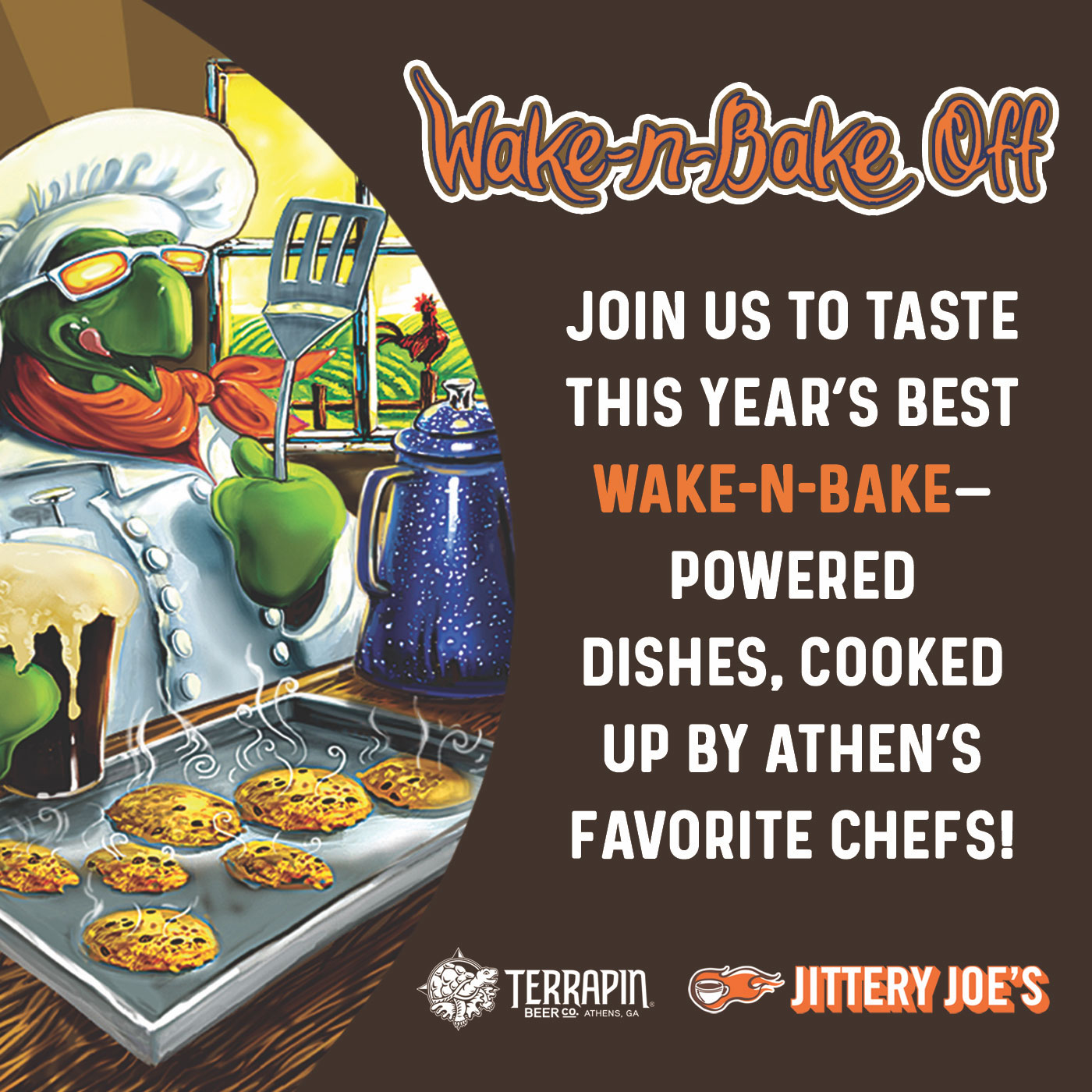 Join us at Terrapin’s Athens Brewery & Taproom on Sunday, February 22nd at 4pm for our annual Wake-n-Bake Off. This event is a unique cooking and baking competition full of creative cuisine, utilizing Terrapin’s Wake-n-Bake Coffee Oatmeal Imperial Stout as an ingredient!