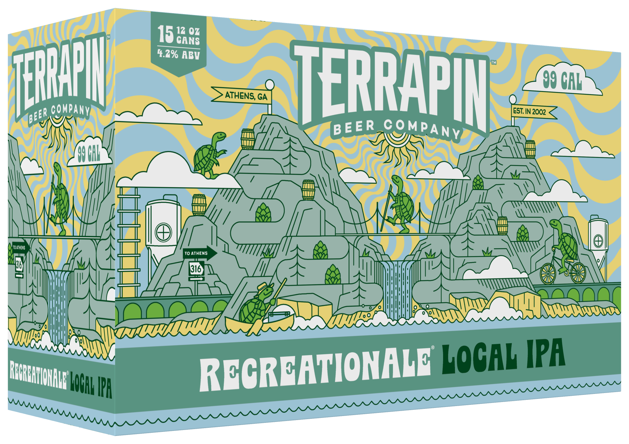 "For RecreationAle, the inspiration was Hartford ‘77. I wanted this label to feel like a day off in Terrapinland: everybody’s outside, getting their recreation in, while the beer quite literally flows through Hop Mountain.